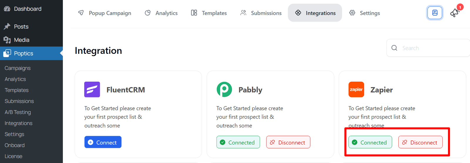 - Go to Poptics → Integration page.
